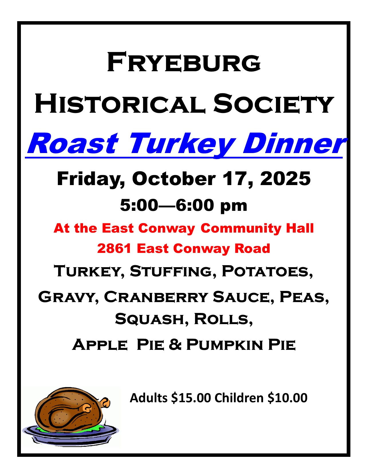 Community Supper: Roast Turkey Dinner, Friday, October 17, 2025.